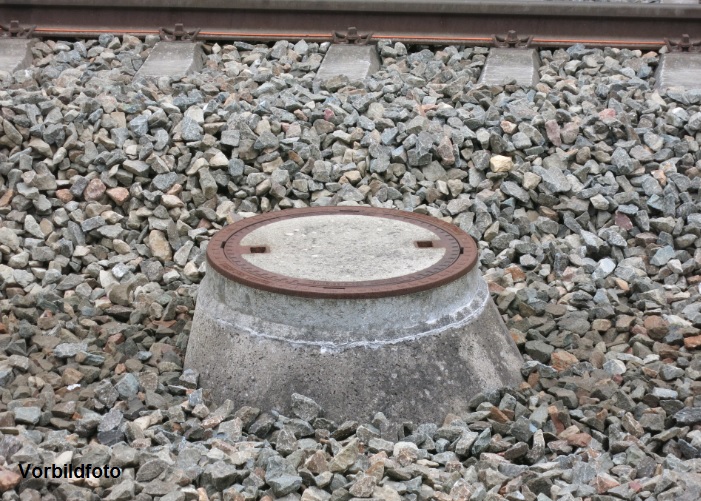 Für unsere Kanaldome haben wir eine Variante mit Gußring und betonierter Mitte ausgewählt. Die konischen Betonteile mit dem schweren Deckel ragen oft bei Feldern oder bei größeren Bahnanlagen aus dem Boden. Meist sind es Drainagesysteme, die landwirtschaftliche Nutzflächen oder Bauwerke vor Verwässerung schützen sollen. Passend hierzu ist übrigens unser Schrax-Schotter.
