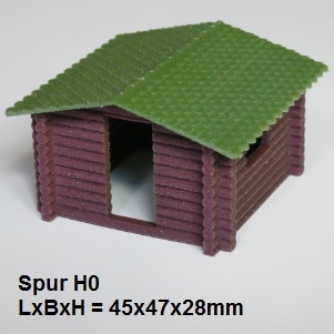 Die Blockhütte wurde aus Baumstämmen errichtet; Eingang und Fenster mit der Kettensäge eingebracht. Solche Hütten findet man oft an Wanderwegen oder Skileupen. Allerdings kann man das Modell auch problemlos als Bushäuschen oder Abenteuerspielplatz verwenden.